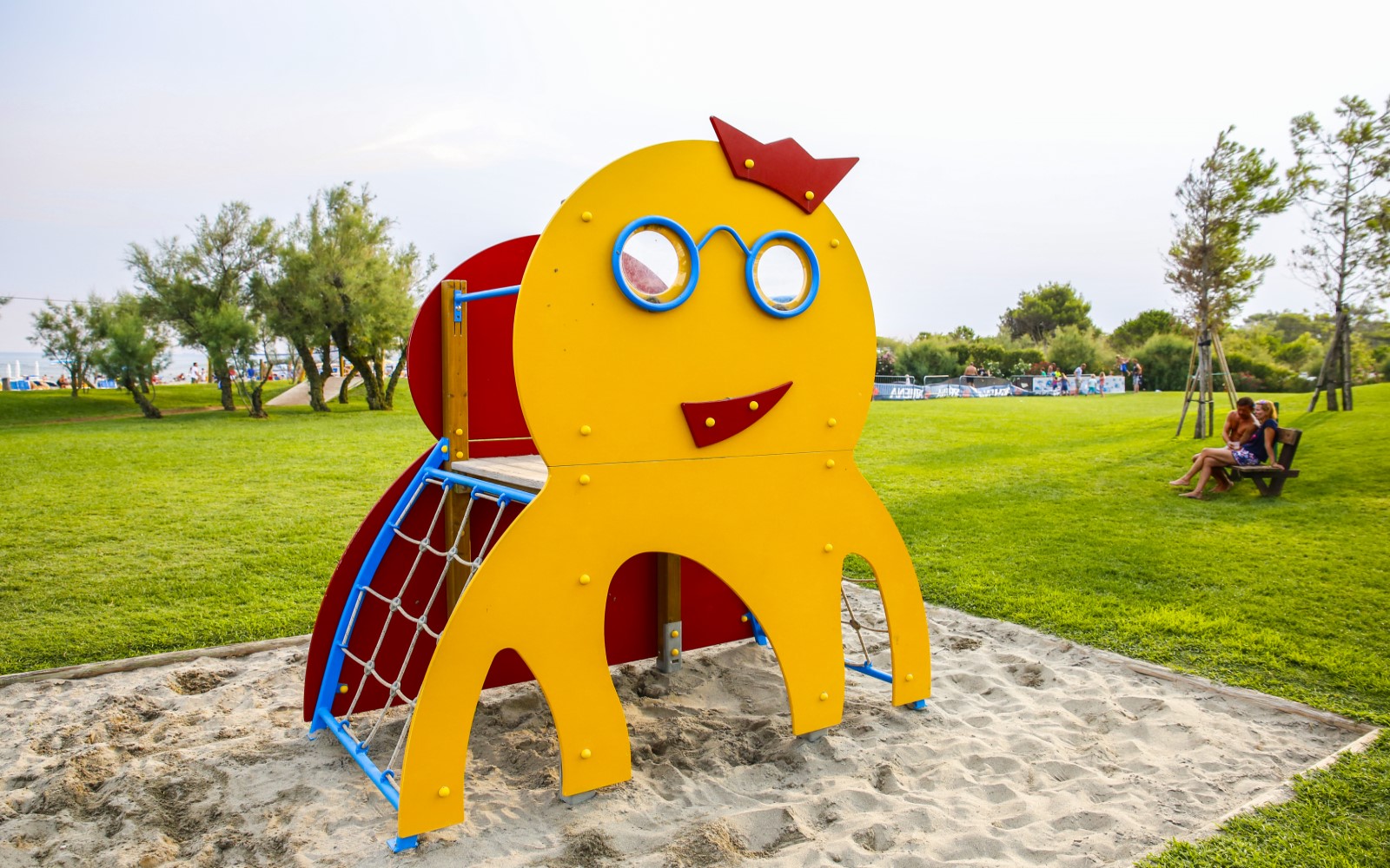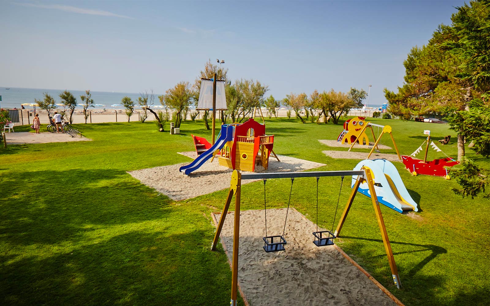 Il parco giochi nell’area verde fronte mare del Camping Village Mediterraneo è dedicato al divertimento dei più piccoli! Ecco perché trascorrere una vacanza in famiglia sul Mare Adriatico nel nostro villaggio turistico a Cavallino Treporti, a due passi da Jesolo, perfetto per i bambini, è la scelta giusta!