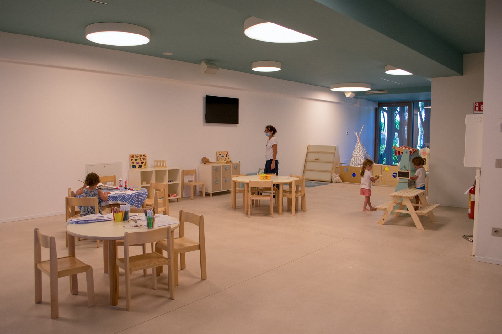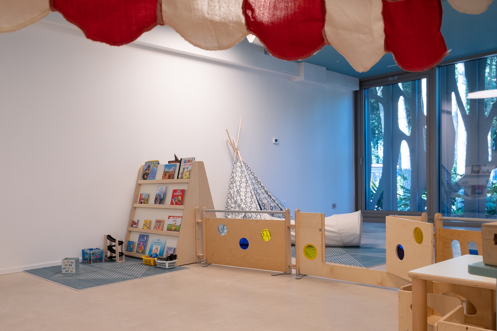 Ordinato e organizzato a misura di bambino per garantire sicurezza ed essere utilizzato in modo efficiente. Calmo ed armonioso per favorire la libera espressione degli interessi e delle esperienze di ogni piccolo ospite. Curato ed esteticamente bello in linea con lo stile del progetto Le Terrazze del Mediterraneo. Ispirato alla filosofia Montessori con relativi giochi e materiali.